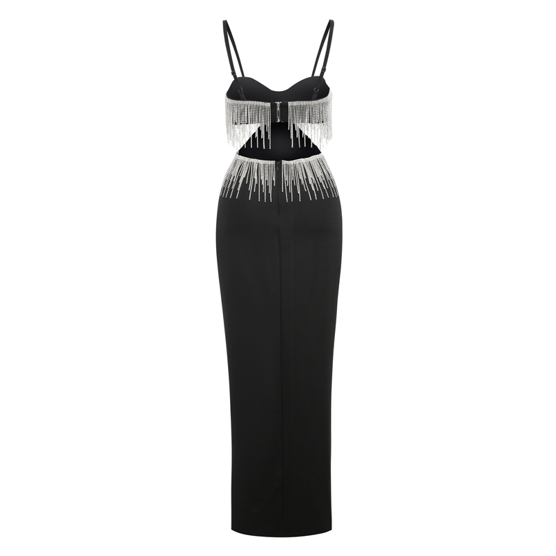 R30290S 2022 new arrival high-end fashion tassel sexy high waist split sling dress female European women's clothing wholesale