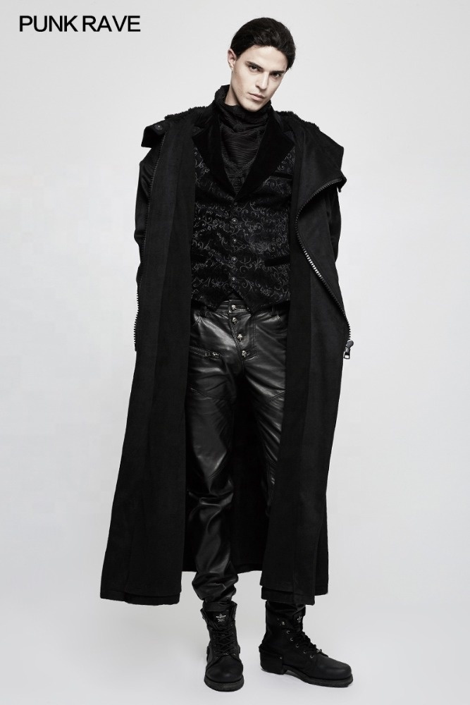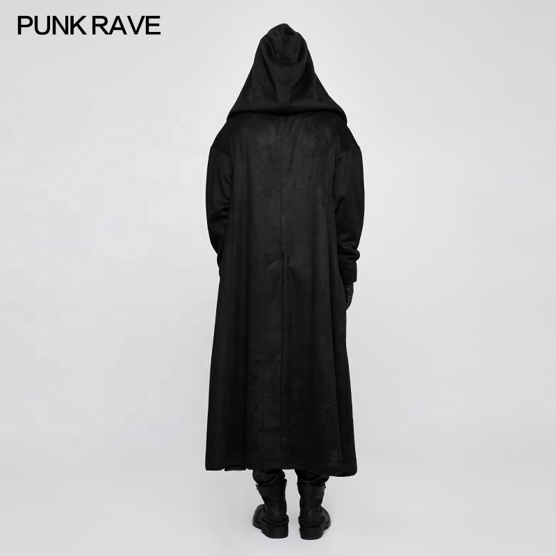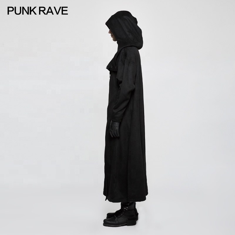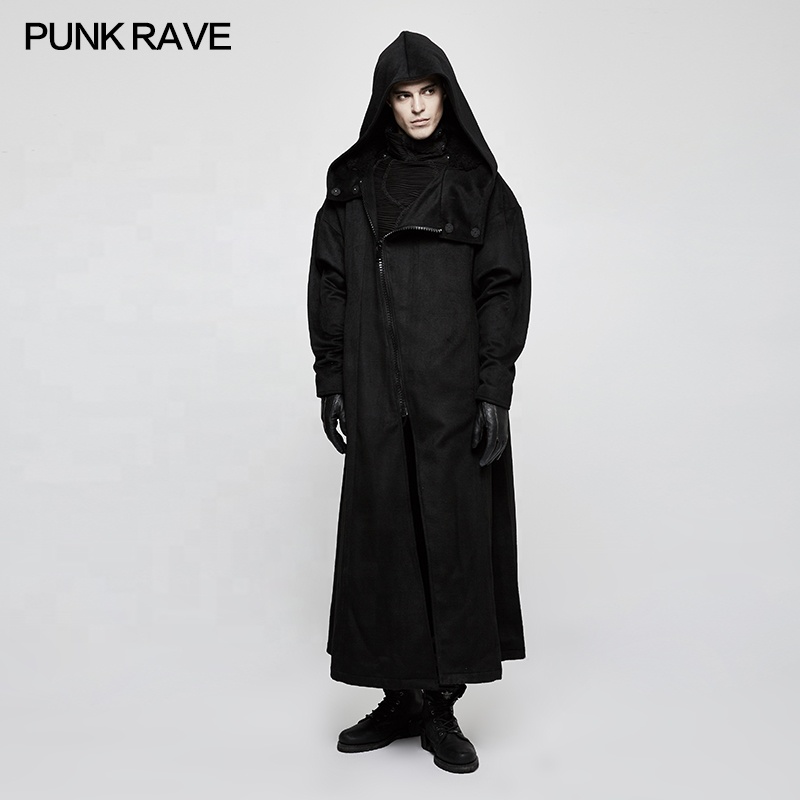 PUNK RAVE Gothic Winter Hooded Long Jacket OPY-226 Gentleman Men Black Thick Breathable Big Poncho Coats Overcoat
