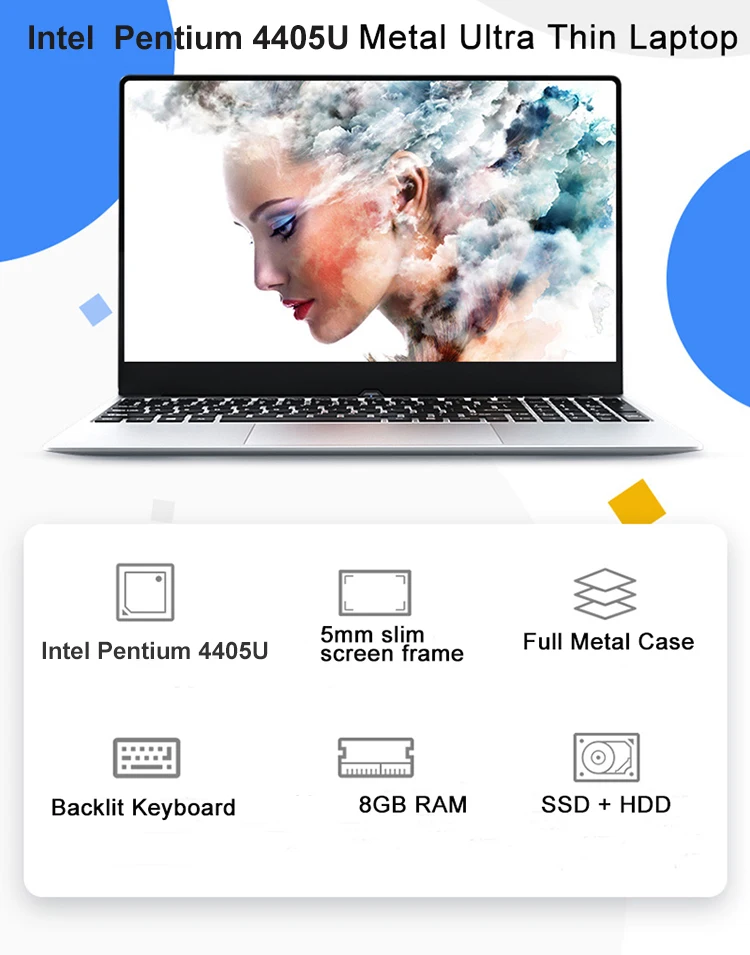 15.6 Intel Skylake CPU pentium processor 4405U 8GB RAM Metal Gaming laptop Computer