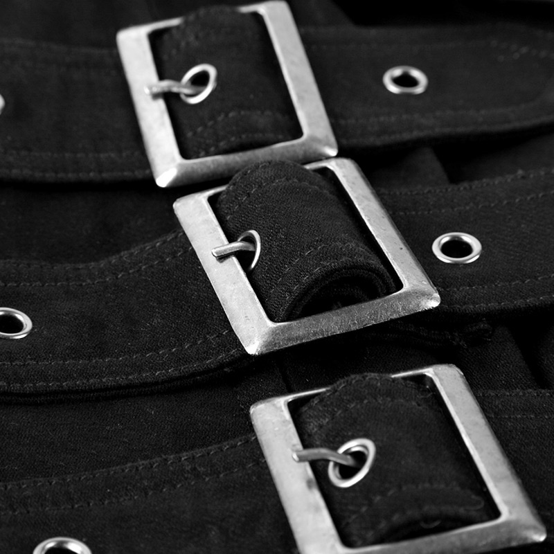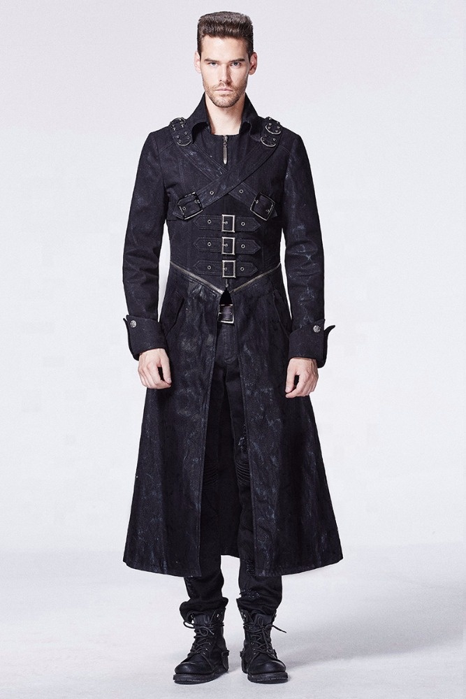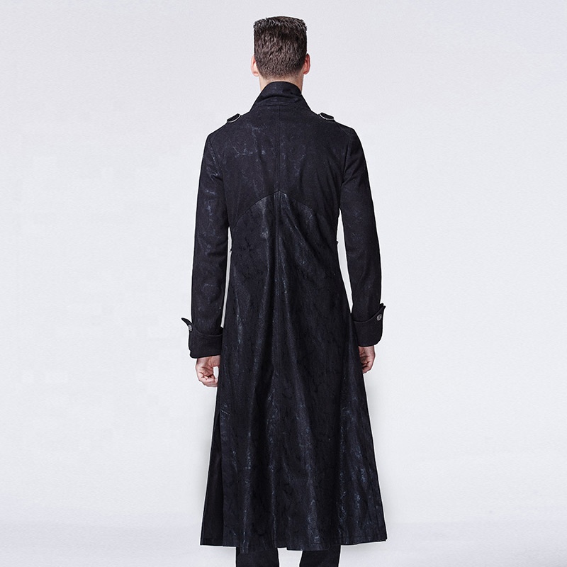 PUNK RAVE Y-594 Fashion Stand Collar Breast Cross Men Long Fitted Trench Coat