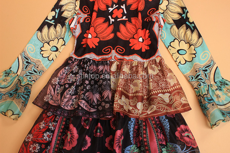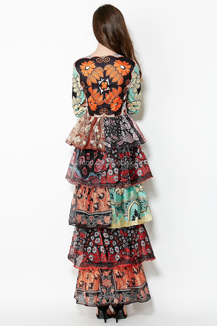 Name | H001 New fashion Beautiful Women silk dress Layered Horn Sleeve Print Slim Catwalk Dress |