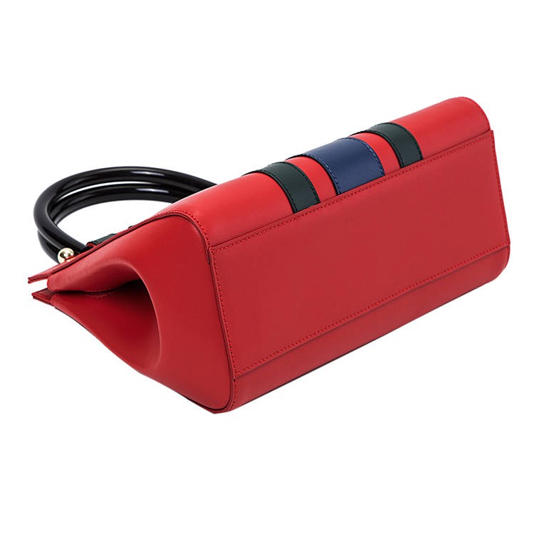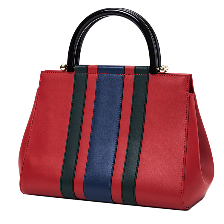 Hot Sale Ladies Genuine Plain Nappa Leather Red Color Handbags Luxury Business Women Stripe Tote Bags With Private Label