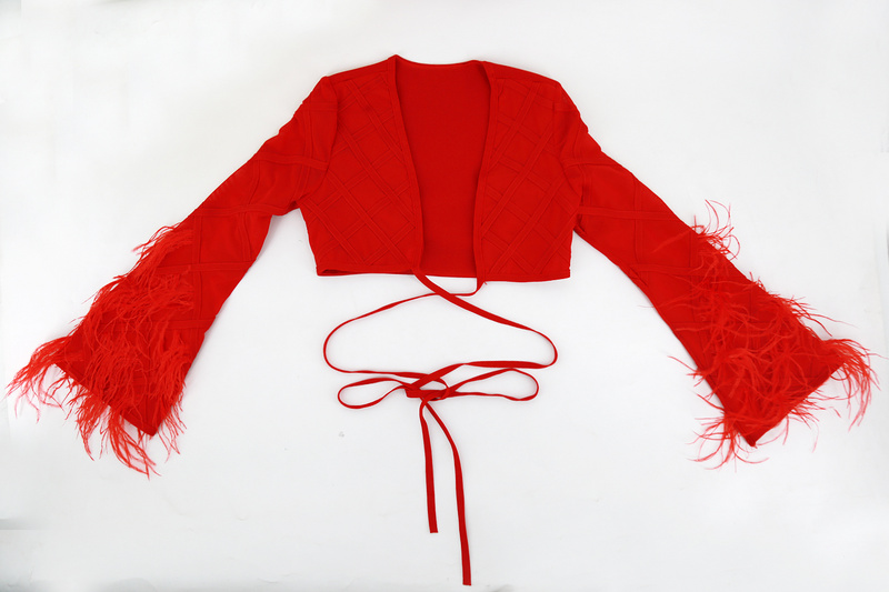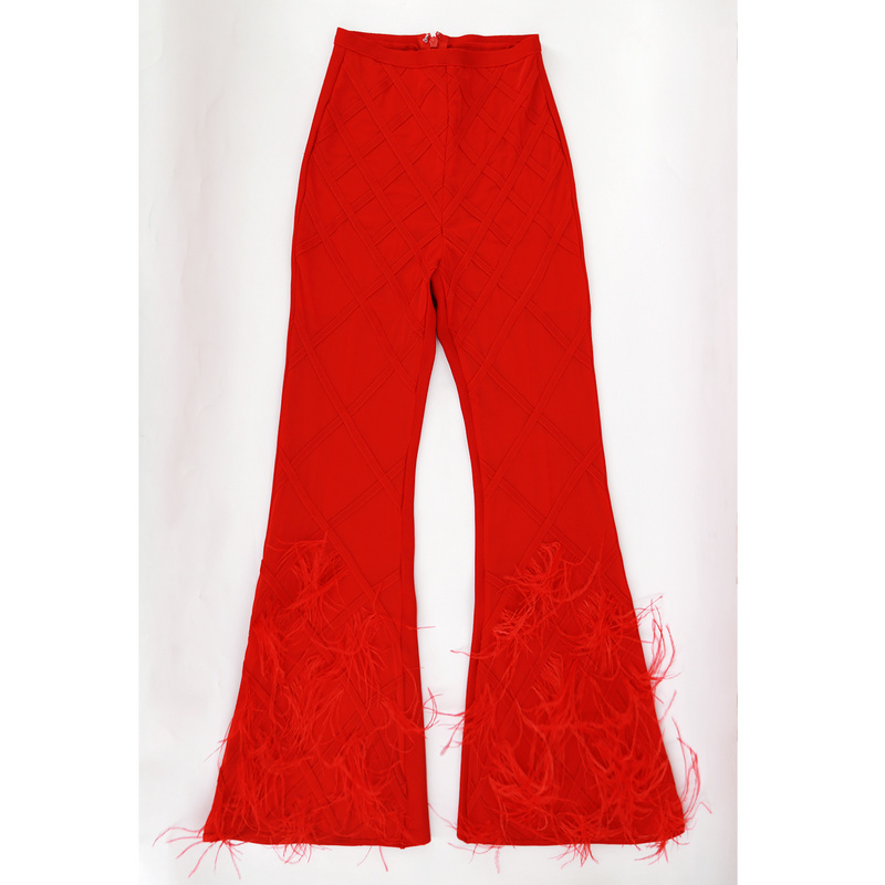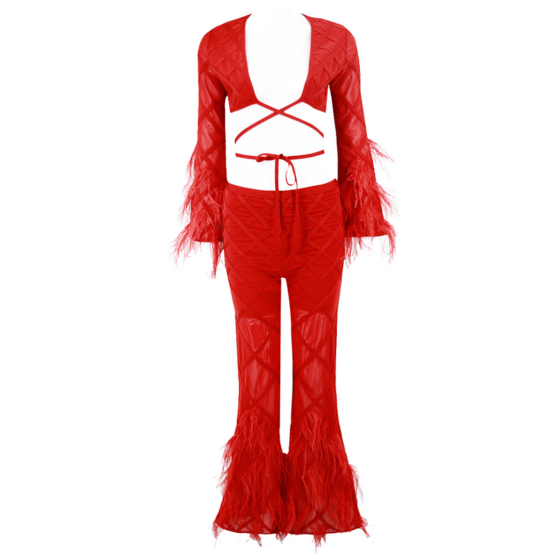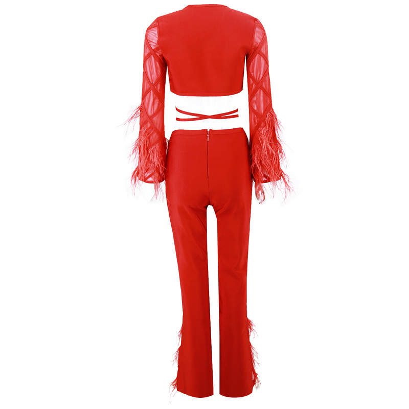 Red sexy bandage long tops bell-bottoms two piece pants set