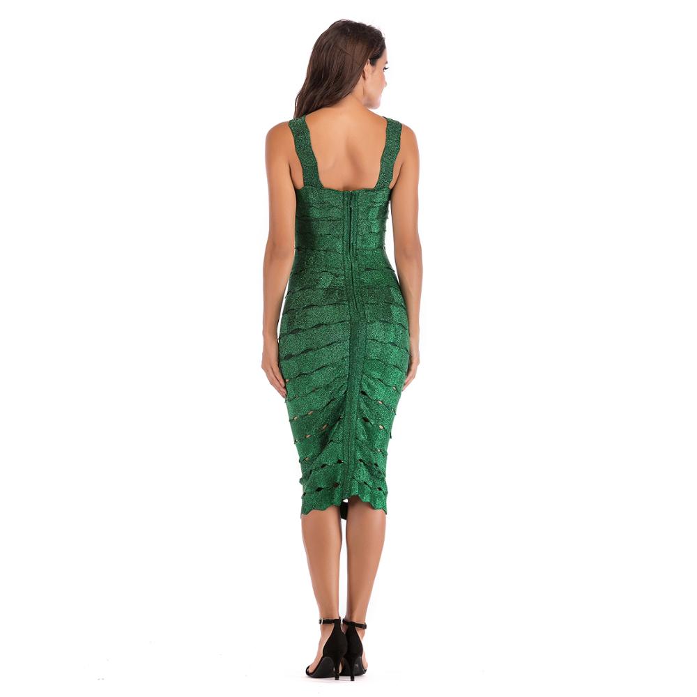 2018 Bronzing Green Sexy Women Knee Length Bandage/Bodycon Dresses For Party