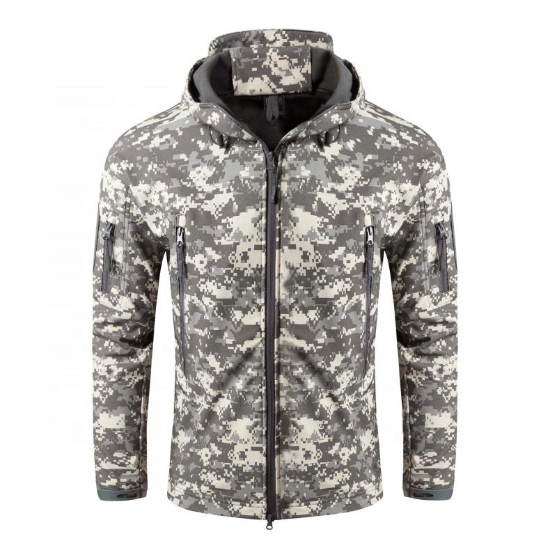 Men's Outdoor Softshell Tactical Jacket Camouflage Waterproof Jacket Hoody Coat for Winter Autumn