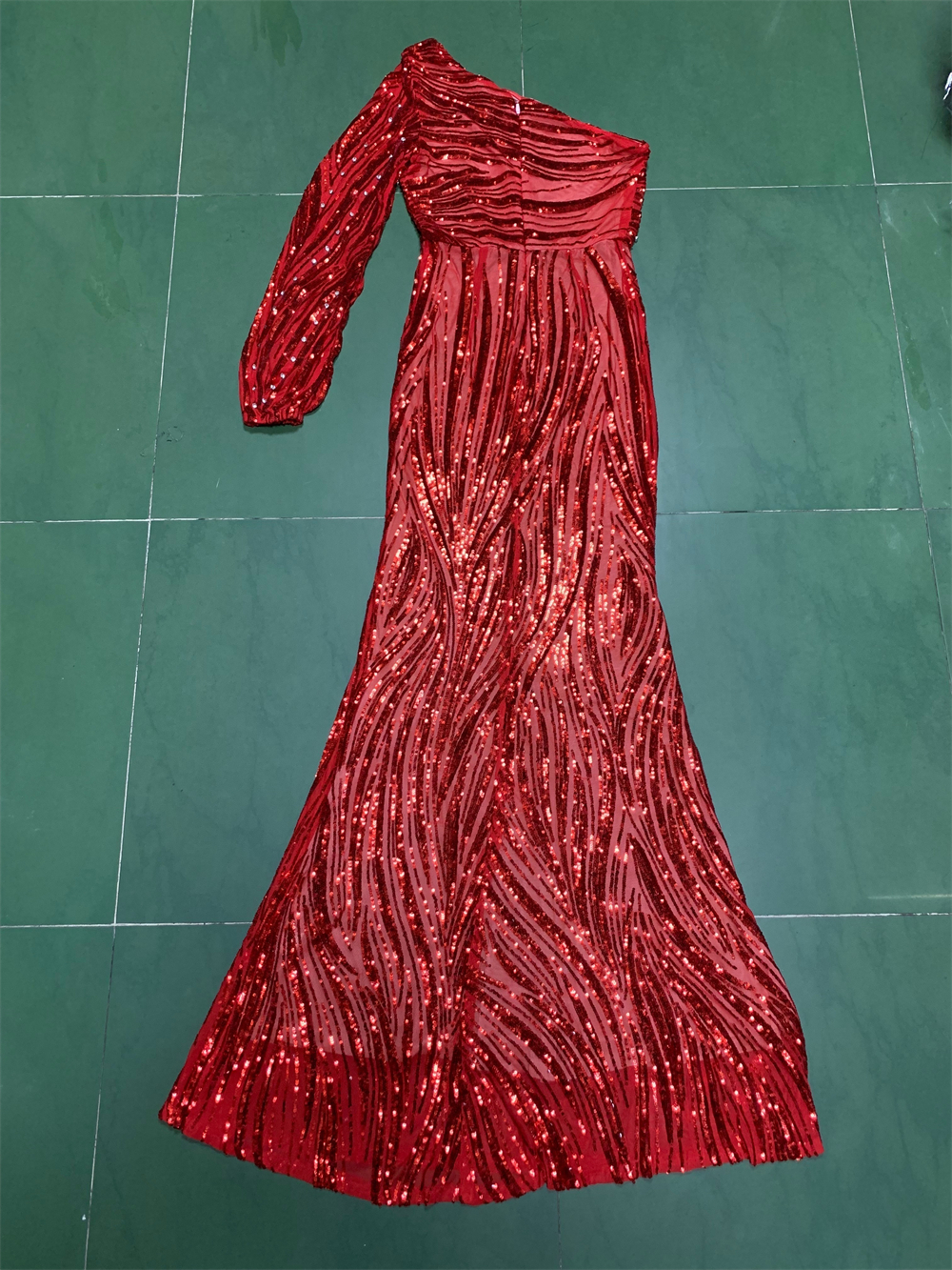 2021 newest One Sleeves Women Celebrity Bodycon Long Maxi Party Sequin Evening Dress