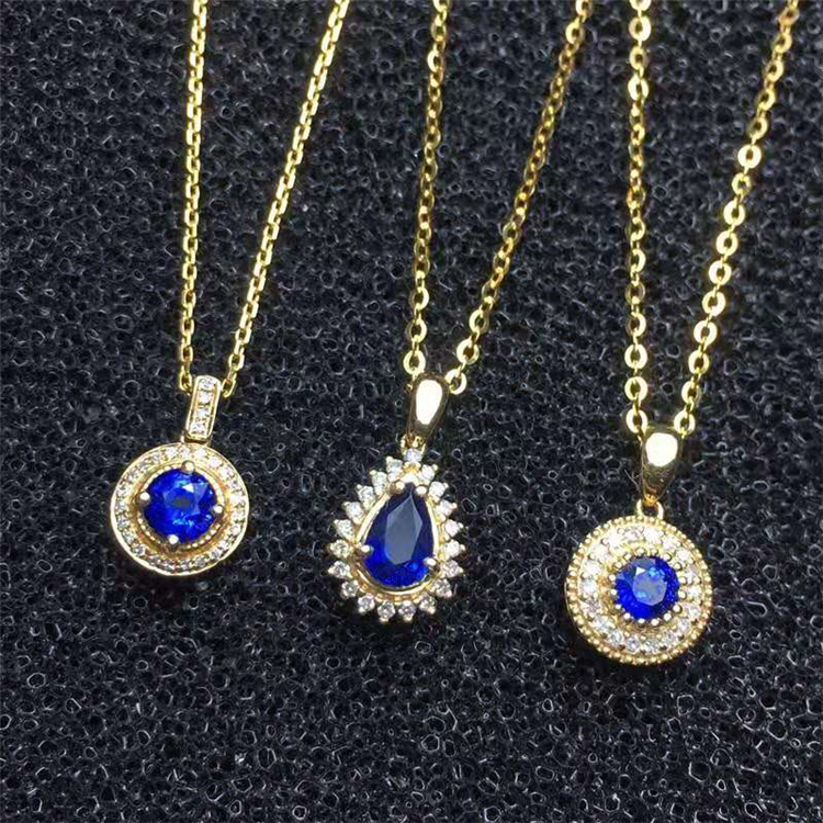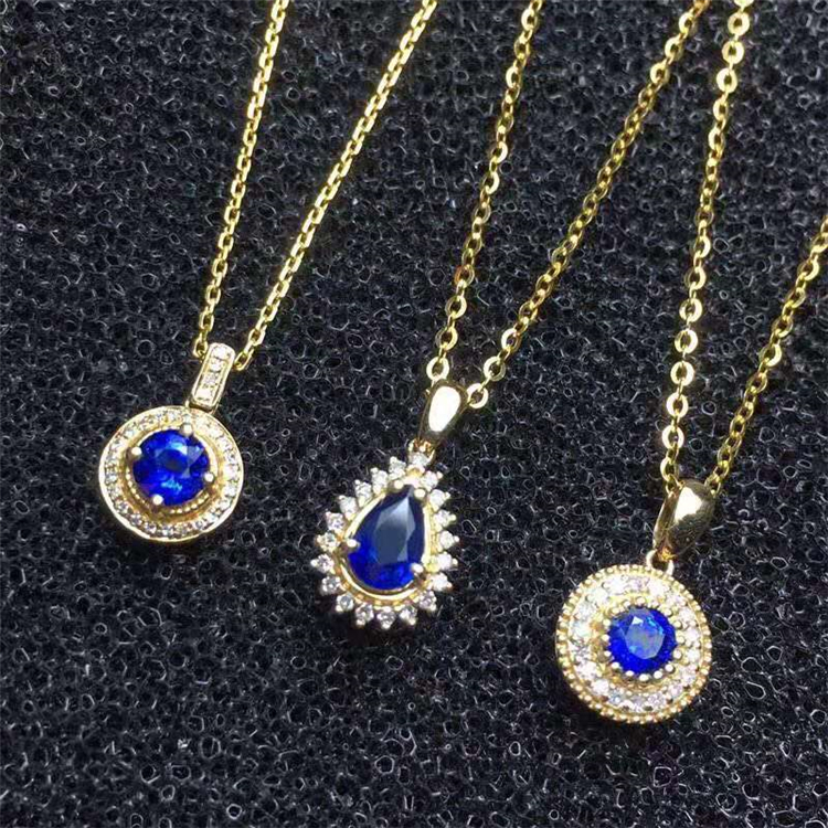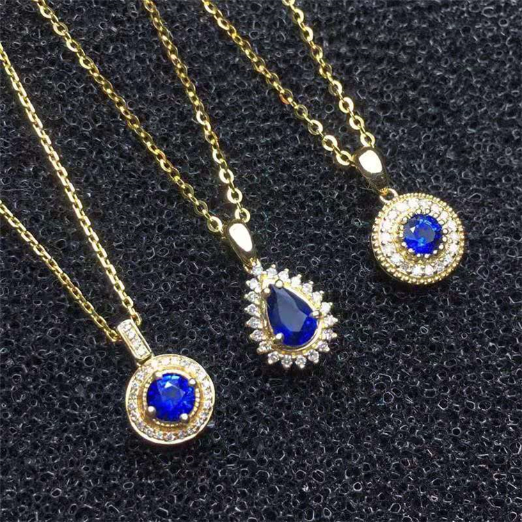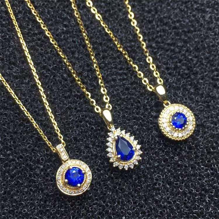 Dubai Style Luxury Necklace In 18k Gold Jewelry Sri Lanka Stone Natural Sapphire Pendant Necklace