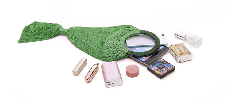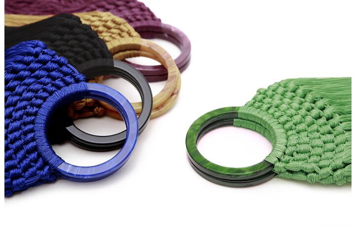 Luxury Acrylic Handle Women Tassel Body Handbags Handmade Weave Mesh Net Basket Female Ring Handle Tote Braided Summer Beach Bag