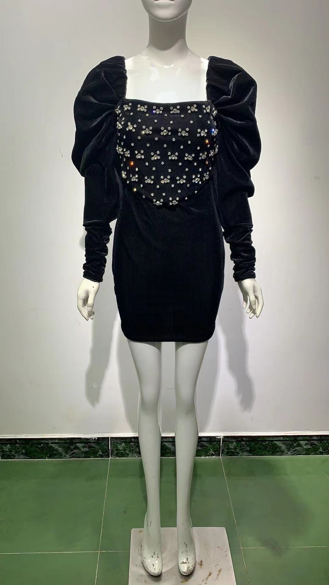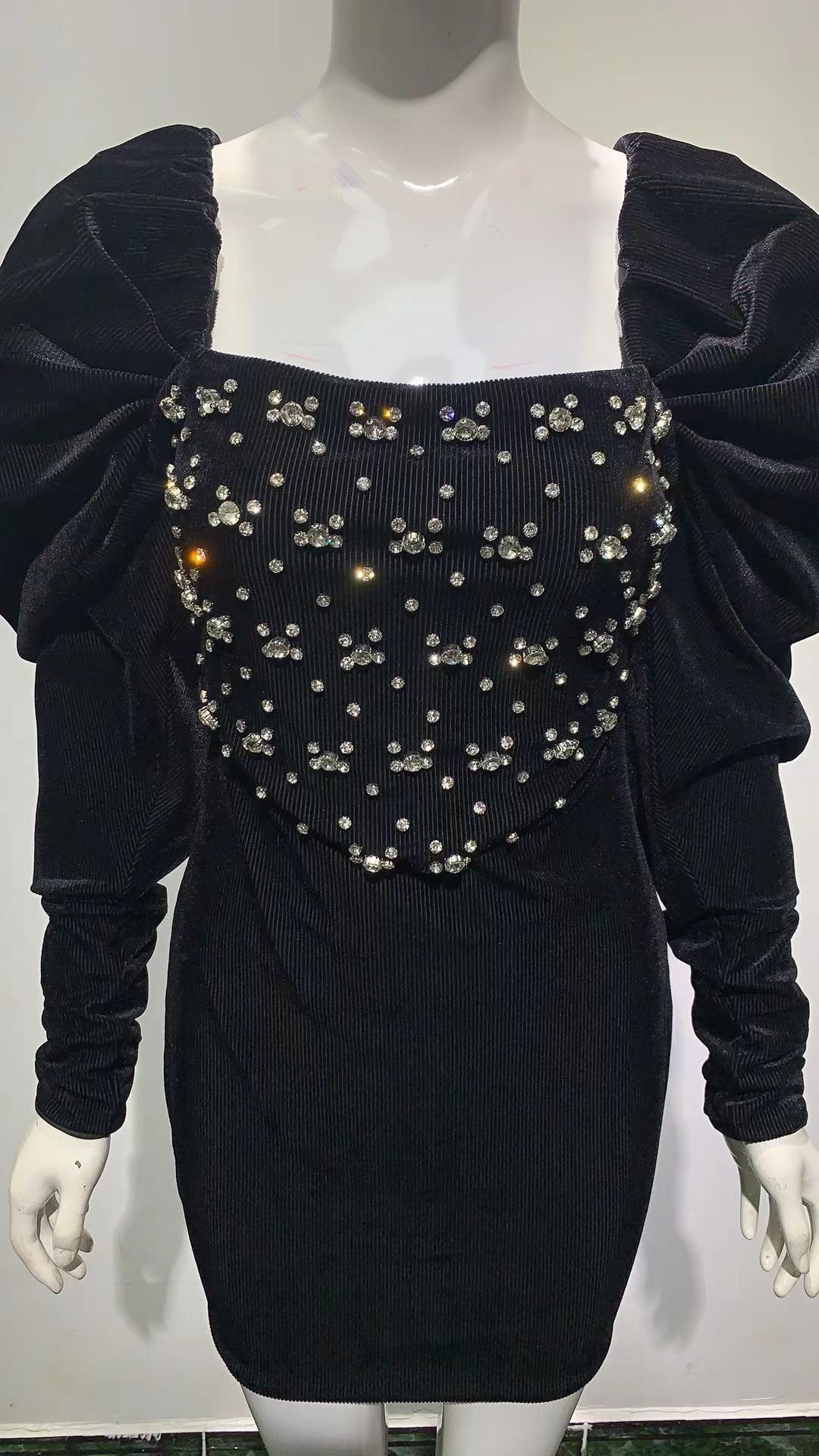 Long Sleeve Sexy Beading Women Celebrity Evening Bandage Party Dress