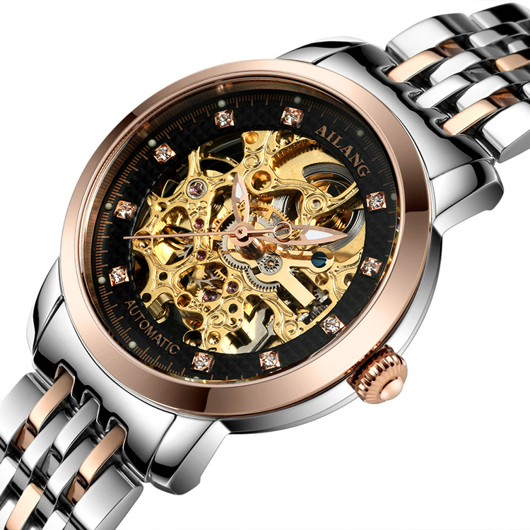 AILANG 6813 women Automatic Mechanical Wristwatch Luxury Stainless Steel Strap watch Stand