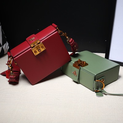 Real Leather Vintage Box Bags Ladies Shoulder Bag Square Cow Leather Handbag For Women