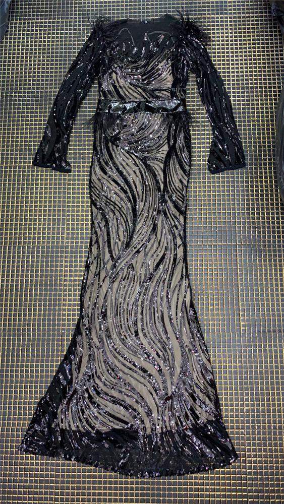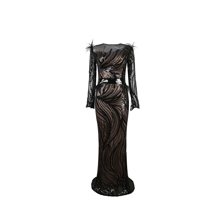 High Quality Long Sleeve Sexy Women Celebrity Clubwear Long Maxi Evening Party Dress
