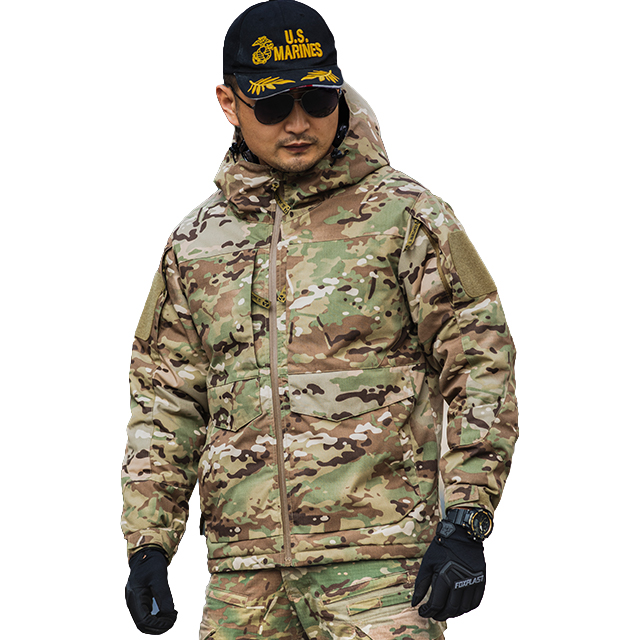 Winter outdoor jacket men's three-in-one waterproof windbreaker plus velvet thick warm camouflage tactical jacket
