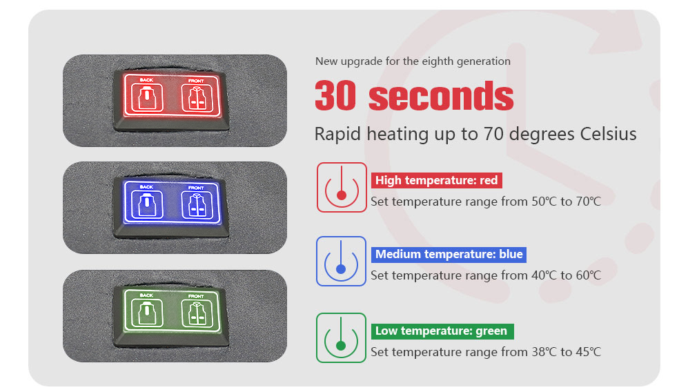 Heating: 4 zones, one on neck, one on back, two on chest.
