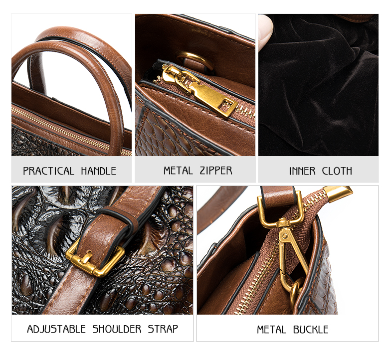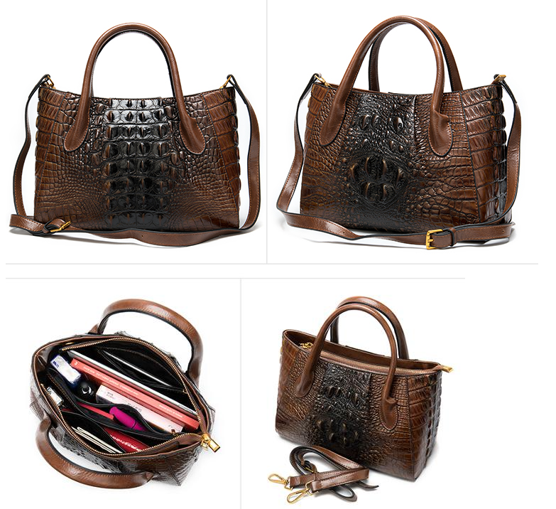 Fashion Ladies Crocodile Pattern Genuine Leather Vintage Handbag Large Capacity Women Shoulder Bag Wholesale Shopping Luxury Bag