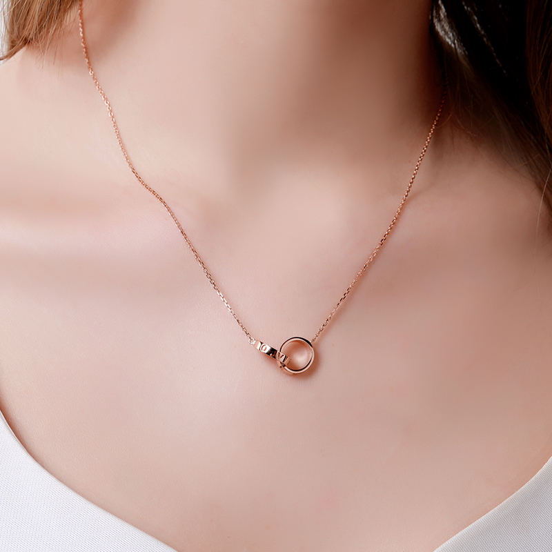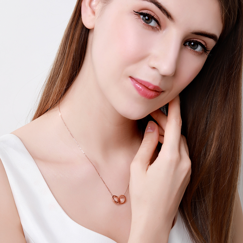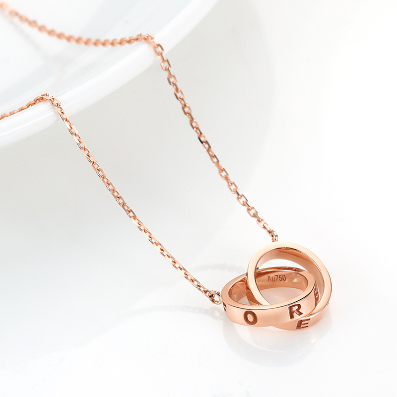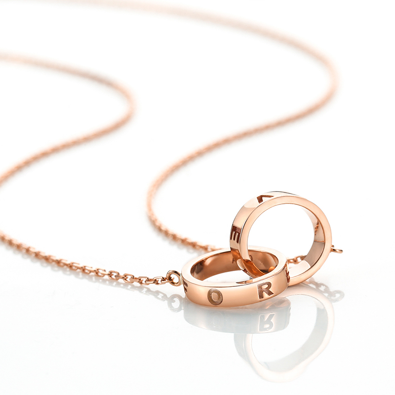 14K 18K Gold Double Ring Pendant womens Fashion trendy necklace