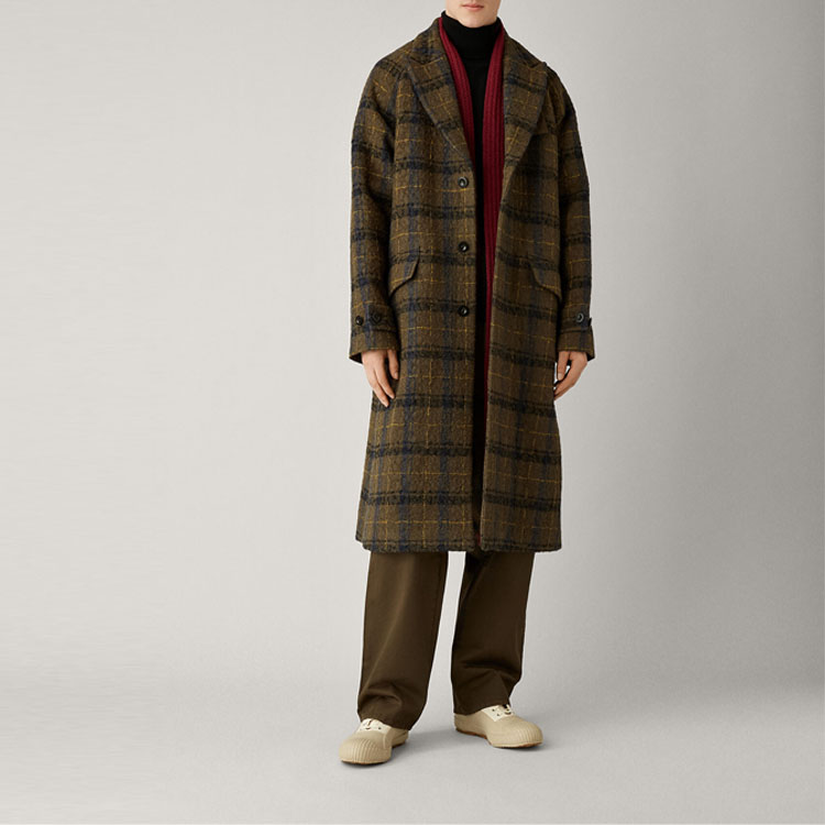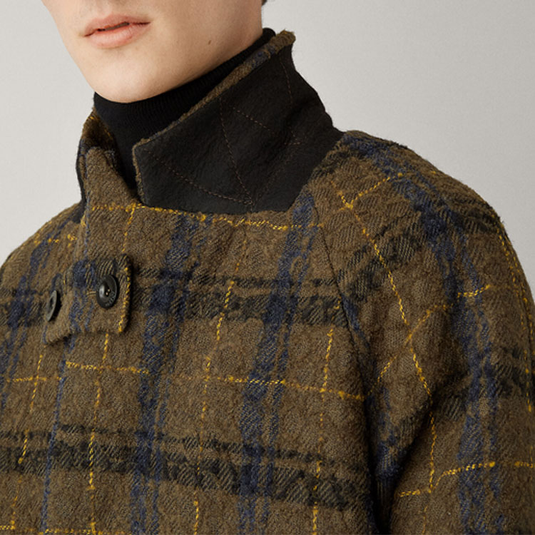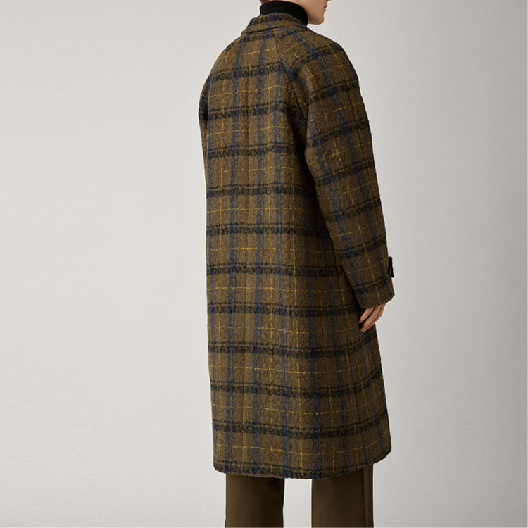 OEM Plaid Check Polyester Custom Wool Cashmere Overcoat Thick Long Winter Outwear Checked Trench Coat men's coats
