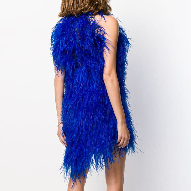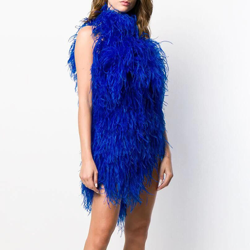 Designer style fashion sleeveless women sexy mini ostrich feather dress