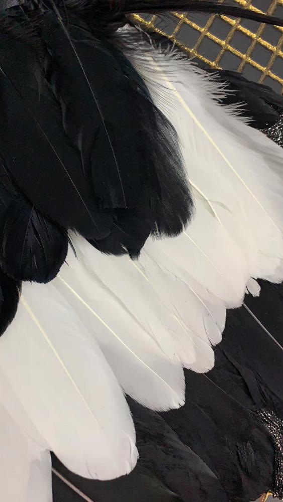 A7377 High End Newest Classic Black Long Feather Sexy Side Cut Long Evening Dresses