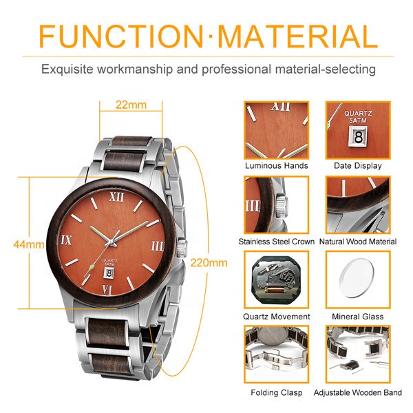 Product name | Luxury 5 ATM Waterproof OEM Custom Quartz Men Wrist Watches Stainless Steel Wooden Watch | ||||||