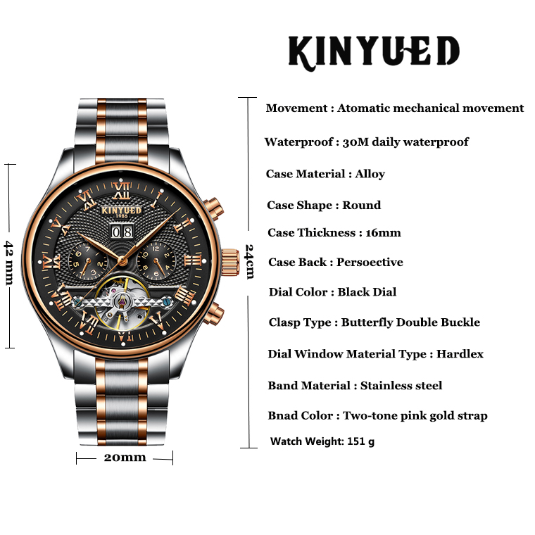 KINYUED J012 Men's Gold Wrist Watch Women Montre Customized Homme Chronographe Luxury Waterproof Watch