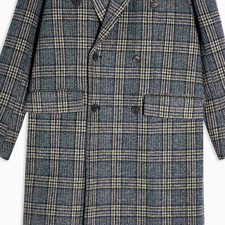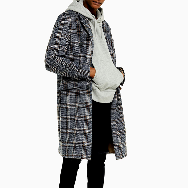 Product Style | 2020 Winter new lapels double-row buttons switch to flip pocket long checkered coat men. |