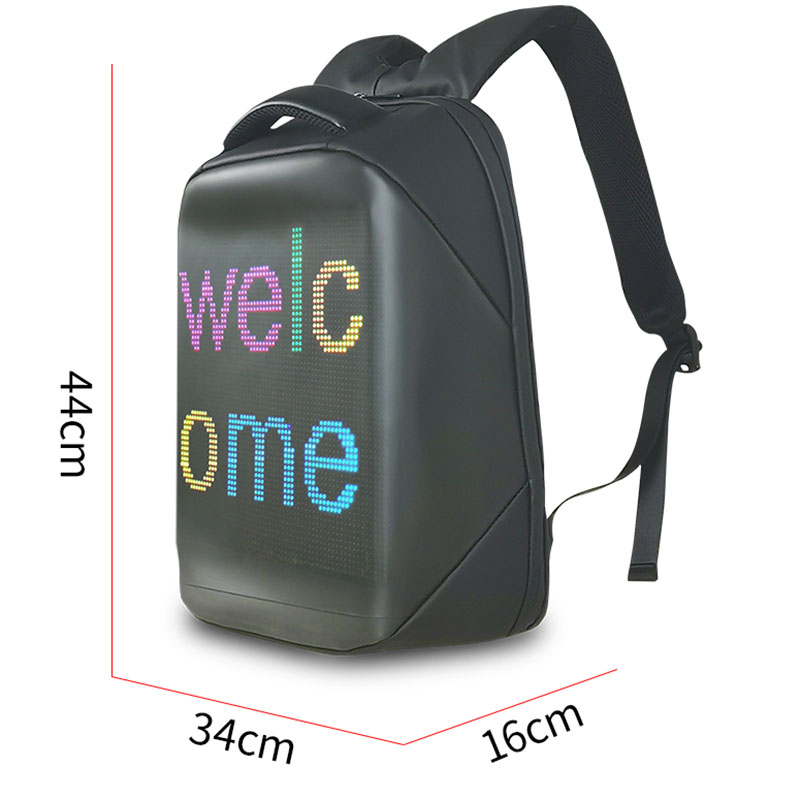 2022 New Trend Digital Dynamic Screen Black Nylon Backpack Led Light Display Smart Men Backpack With Mobile Billboard