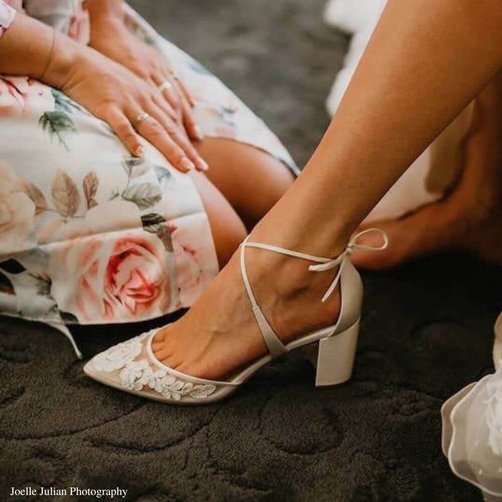 ABIGAIL Ivory Block Heel Wedding Shoes with Floral Lace Appliqué