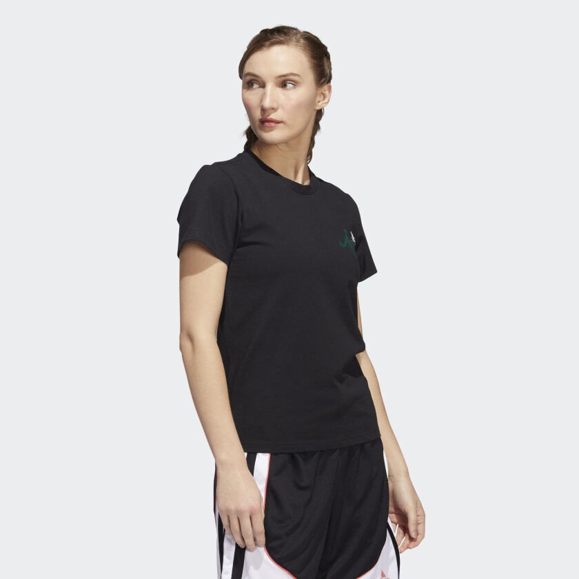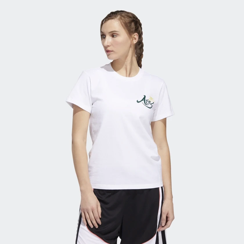 A nod to family, Candace Parker style. This adidas basketball t-shirt celebrates Parker's daughter Lailaa with a lily graphic next to her Ace logo, symbolic of Lailaa's birth month. It's made of soft cotton single jersey to keep you comfortable when you play or when you kick back with friends. Our cotton products support more sustainable cotton farming.