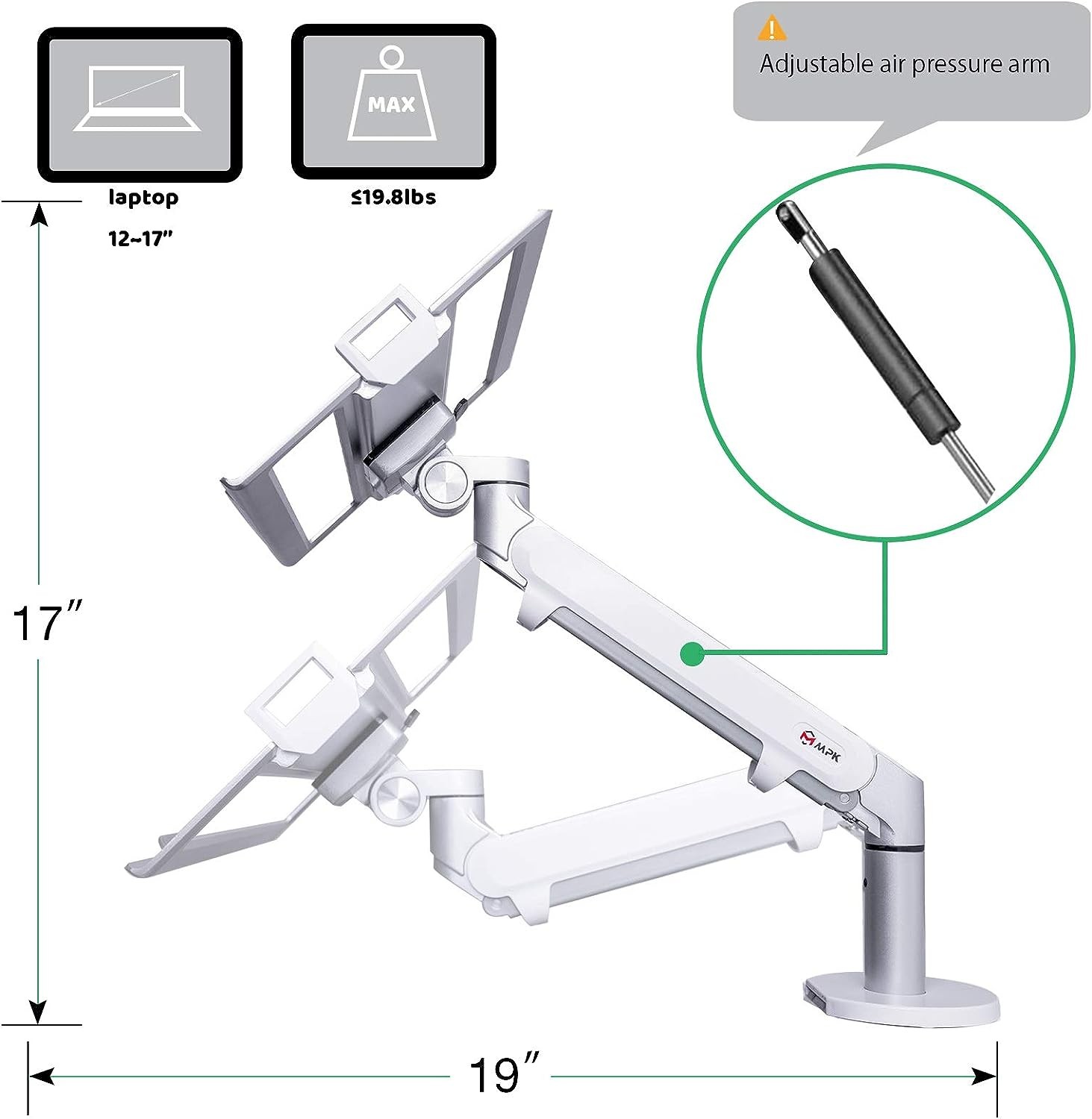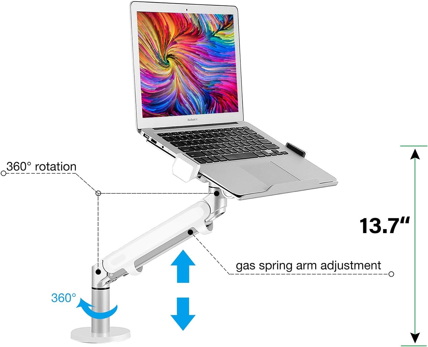 Gas Spring Adjustment: Say goodbye to fixed, uncomfortable positions. Our laptop mount for desk is equipped with a gas spring mechanism, offering seamless height adjustments. Achieve the perfect ergonomic posture and elevate your productivity.