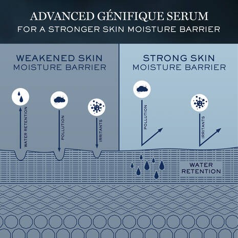 Advanced Génifique Serum improves elasticity and improves the appearance of fine lines caused by dehydration or due to thinning skin, which can eventually deepen into wrinkles. Used morning and night, Advanced Génifique serum visibly hydrates, plumps and evens tone to restore healthy, younger-looking skin in just 7 days*.