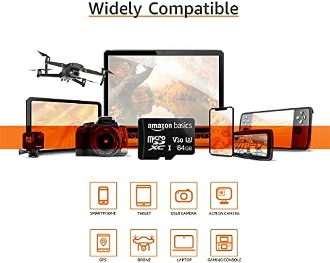 This fits your?. Make sure this fits by entering your model number. P.when("ReplacementPartsBulletLoader").execute(function(module){ module.initializeDPX(); }) microSDXC memory card for storing high resolution photos, recording and storing Full HD/4K videos, and other data types Includes a 64 GB microSDXC memory card and a full size SD adapter Durable design is shockproof, IPX6 waterproof, temperature proof (-10 to 80 degrees F), X-Ray proof, and magnetic proof Compatible with smartphones, cameras, GoPro cameras, tablets, laptops, desktops, DSLRs, Nintendo Switch, and more Fast read speed up to 100mb/s and write speed up to 30mb/s (varies according to memory size) UHS, U3, Class 10 and A2 speed classes for optimal smartphone experience Note: Actual storage capacity shown by a device's OS may be less than the capacity indicated on the product label due to different measurement standards
