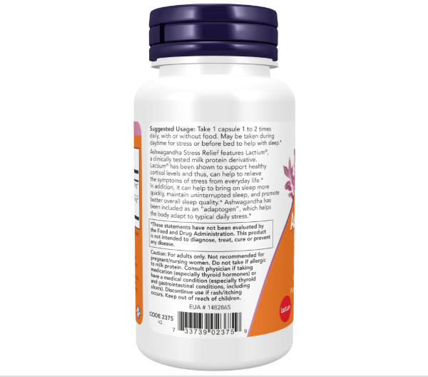 Ashwagandha Stress Relief features Lactium®, a clinically tested milk protein derivative. Lactium® has been shown to support healthy cortisol levels and thus, can help to relieve the symptoms of stress from everyday life.* In addition, it can help to bring on sleep more quickly, maintain uninterrupted sleep, and promote better overall sleep quality.* Ashwagandha has been included as an “adaptogen”, which helps the body adapt to typical daily stress.*
