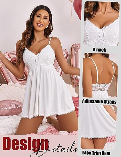 ❤Unique design: Babydoll lingerie nightgown for women features floral lace patchwork on top, well scalloped lace trim on the edge of flowy skirt bottom, mini bow decor in the middle of lace cups, enhance women femine charms.