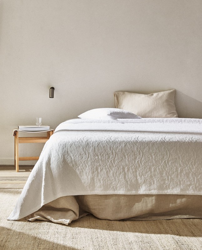 BEDSPREAD WITH FLORAL EMBROIDERY