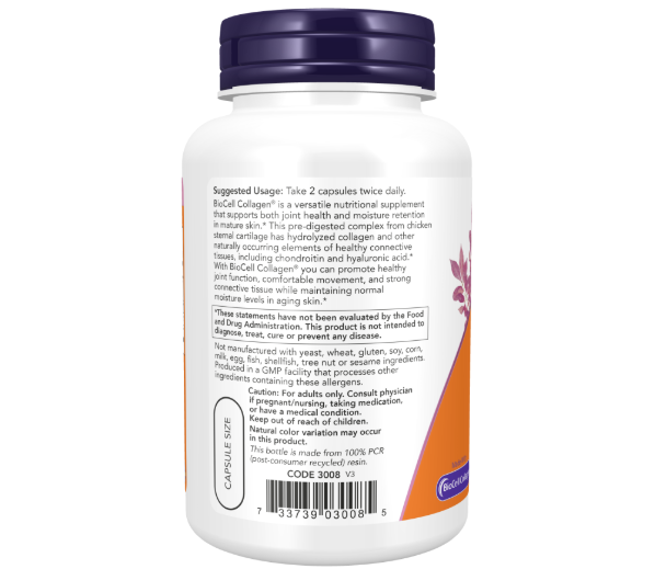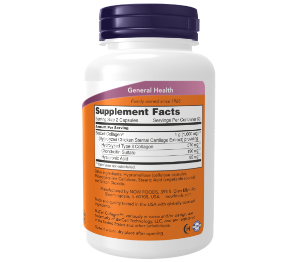 BioCell Collagen® is a versatile nutritional supplement that supports both joint health and moisture retention in mature skin.* This pre-digested complex from chicken sternal cartilage has hydrolyzed collagen and other naturally occurring elements of healthy connective tissues, including chondroitin and hyaluronic acid.* With BioCell Collagen® you can promote healthy joint function, comfortable movement, and strong connective tissue while maintaining normal moisture levels in aging skin.*