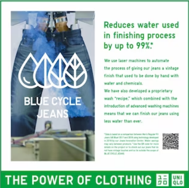 - BLUE CYCLE JEANS technology reduces the volume of water* used in the finishing process. Water savings may vary between products.