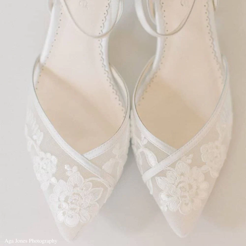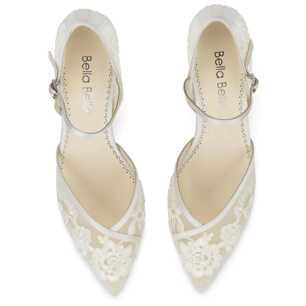 CANDICE IVORY Ivory D'Orsay Lace Wedding Shoes for Bride Low Heel Design