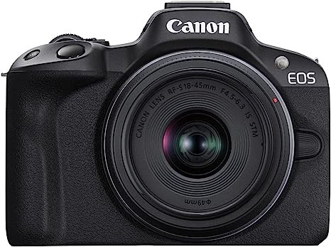 Canon EOS R50 Mirrorless Vlogging Camera (Black) w/RF-S18-45mm F4.5-6.3 is STM Lens, 24.2 MP, 4K Video, Subject Detection & Tracking, Compact, Smartphone Connection, Content Creator