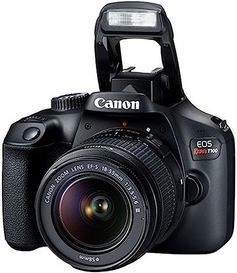 • Canon EOS Rebel T100 DSLR Camera Body (International Version )- 18.0MP APS-C CMOS Sensor,DIGIC 4+ Image Processor, 6.8 cm (2.7") TFT LCD, approx. 230 K dots,,Full HD 1080p Video Recording at 29.97 fps ,9 Point Auto Focus,Dual,Up to 3 fps Shooting and ISO 12800, Scene Intelligent Auto, Instantly transfer photos and movies to your smart device, for easy sharing on social media or cloud backup, and shoot remotely with Wi-Fi and the Canon Connect app,