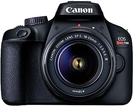 Canon EOS Rebel T100 (EOS 4000D) DSLR Camera w/EF-S 18-55mm F/3.5-5.6 Zoom Lens + 64GB Memory Card, Case, Hood, Grip-Pod, Filter Professional Photo Bundle (Renewed)