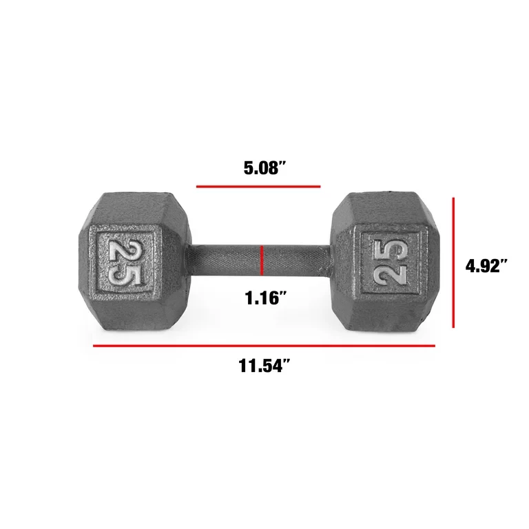 The CAP barbell cast iron hex dumbbell offers dependability and long-lasting performance. Use these cast iron dumbbells to exercise all major muscle groups, including arms, chest, back, abs, legs, and core. The benefits of dumbbell exercises include muscle building, improving core strength, boosting balance, providing better bone health, burning calories, increasing energy levels, enhancing overall mood, and more. The CAP original cast iron hex dumbbell weights have hex-shaped heads to prevent rolling. The medium-depth knurling on the handle provides essential grip and security during use. The enamel coating is a durable and effective finish.