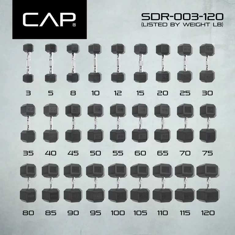 Enhance your workout routine with the CAP Barbell Coated Hex Dumbbell. This sturdy dumbbell is a premium quality weight that's ideal for home use. Made of solid cast iron with a protective black coating, it features an easy-to-grip handle and encased heads to prevent damage to floors. The ergo designed handle helps to reduce hand fatigue and maximize comfort, while the knurling prevents the dumbbell from slipping during workouts. The Hex shaped dumbbell heads ensure the dumbbell will not roll when set down, avoiding injuries and allowing for easy storage. Dumbbells can be used to exercise all major muscle groups, including arms, chest, back, abs, legs and core. Making them perfect for a full body workout.