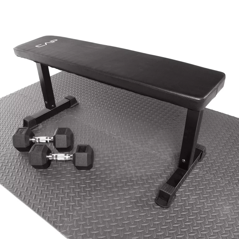 Protect the floors in your multi-purpose space from wear and tear with these CAP Barbell High-Density 1/2-inch Thick EVA Foam Puzzle Mat, 6-Pieces, 20.78 Square Feet. Each one is constructed of mildew-resistant and odor-free EVA foam material that comes with interlocking finishing edges to provide a smooth look. This six piece puzzle mat is easy to connect or disconnect as necessary whenever you need hard floor surfaces cushioned from heavy sports equipment or foot traffic. The non-slip mats are durable enough to withstand hours of daily use and are easy to keep clean with a damp cloth. They're ideal for covering floors in laundry rooms, home gyms or kid's playrooms and help absorb any shocks and impacts. The mats are soft and comfortable enough for you to walk on them in bare feet as you exercise. You can purchase additional home gym mat sets if you need to expand floor coverage in any room.