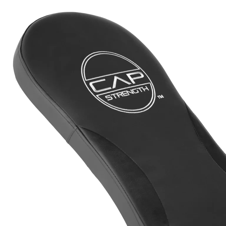 The CAP Strength Multi-Purpose FID Bench offers FOUR different angles, including incline, horizontal and decline positions. This flat, incline, decline bench has sturdy foot positions for protection and stability. With an adjustable back pad, this bench will increase dexterity and versatility in your workout routine. The back pad and seat pad are constructed with firm yet comfortable padding and covered in a black vinyl leatherette for a sleek look. Store up to 2 pairs of dumbbells on the built-in dumbbell hooks. Weight capacity of 300 lbs.
