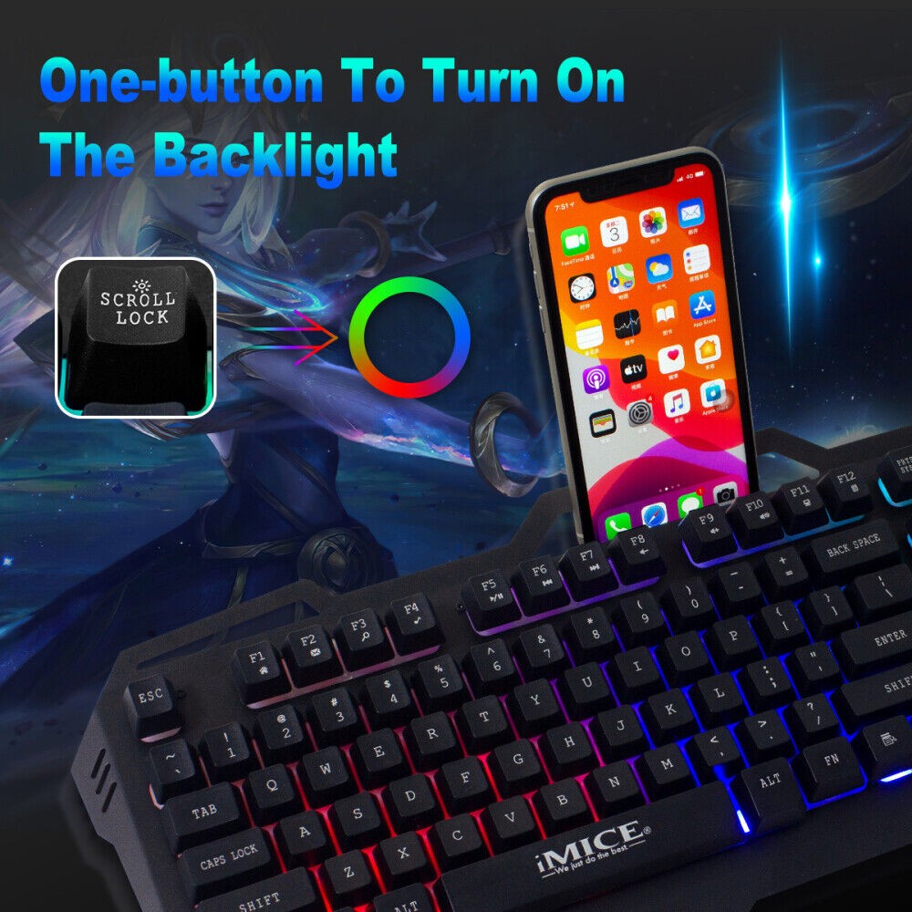 1.Colorful LED Backlight: RGB effect backlit gaming keyboard, adjustable backlight(On/Off).