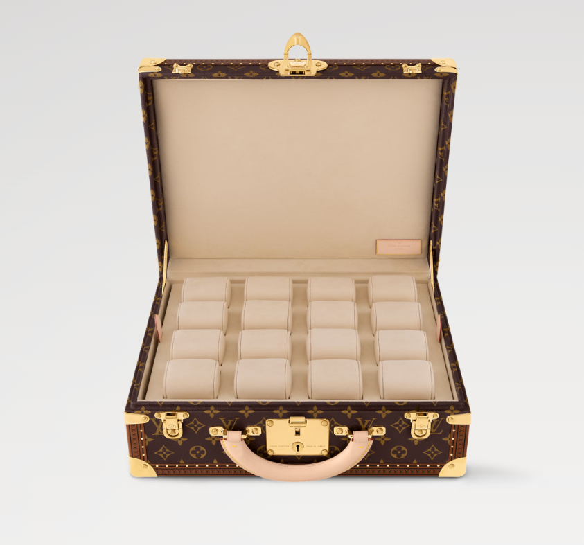 The historical Cotteville case is offered with a removable tray allowing to store up to 16 watches. Available in both Monogram and Monogram Eclipse, this piece is the perfect trunk to display and safely store watches.