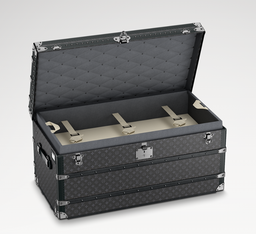 The noble traditions of Louis Vuitton trunk craftsmanship and savoir-faire are perpetuated in the Malle Courrier 110. A rich and sophisticated hard case protects plush interiors. It comes with the masculine Monogram Eclipse signature.