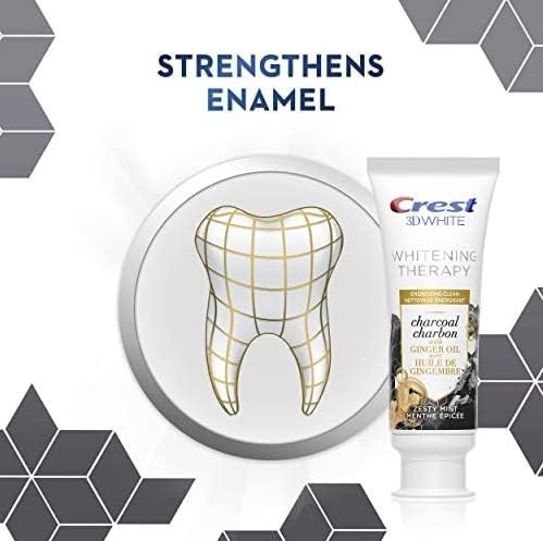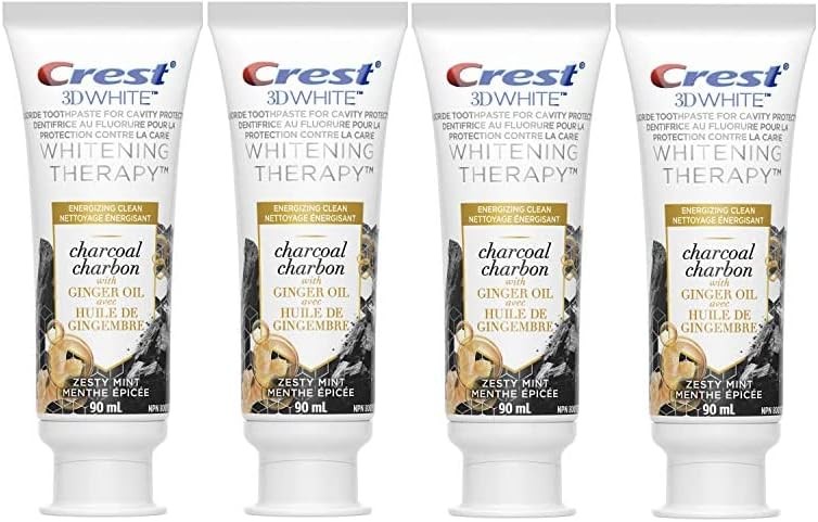 Crest 3D White Whitening Therapy Toothpaste, Charcoal with Ginger Oil, Zesty Mint, 3 oz (90 Ml) - Pack of 4