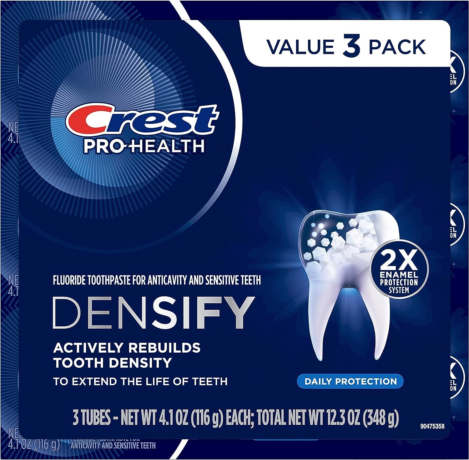 You will receive (3) 4.1oz tubes of Crest Densify Daily Protection Toothpaste